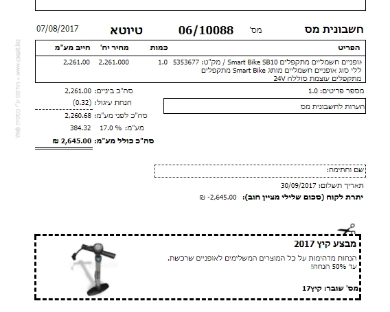 3. כאשר שולחים חשבונית ללקוח וכספית תצרף אותו לחשבונית –