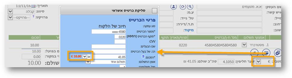 | הסכום: | הסכום לסליקה. | |