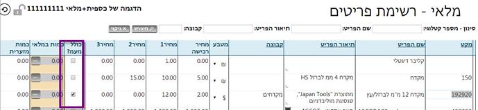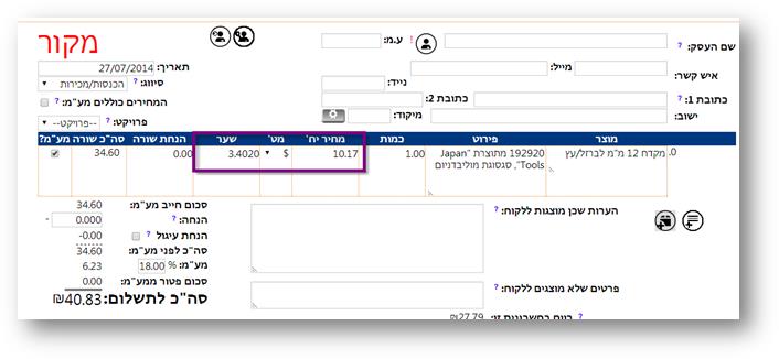 שם לב לפריט 19290 שמחירו הוא ב-$, כולל מע"מ. לאחר הבחירה בפריט, כספית חילצה את המחיר לפני מע"מ ואת המטבע המתאים: