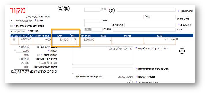 הנה דוגמה לחשבונית עם מט"ח: