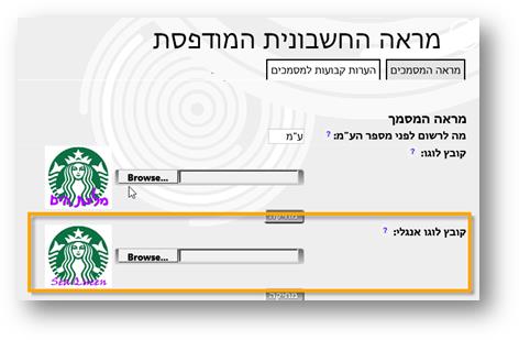 אתה יכול להעלות גם קובץ נפרד למסמכים באנגלית. במקרה זה, כספית תשתמש בלוגו האנגלי למסמכים באנגלית.