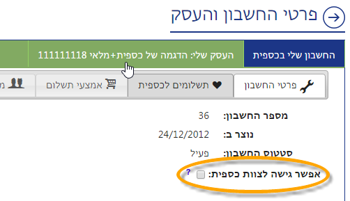 לאחר שתסמן את השדה נוכל להיכנס לעסק שלך ממערכת הניהול של כספית בענן.