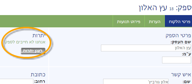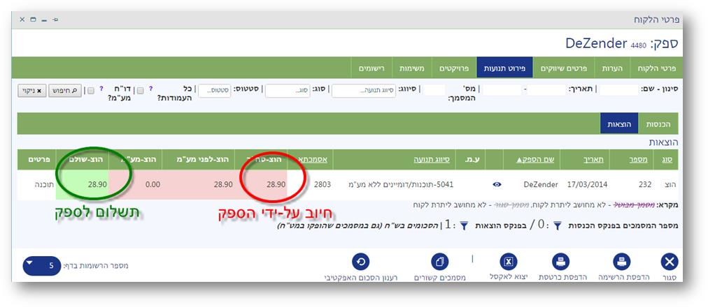 במסך פרטי הספק המקום מצומצם לכן מוצגת רק עמודה אחת: הוצ-שולם ובה הסכום ששולם (שבכמעט 100% מהמיקרים הוא זהה לסכום החיוב).